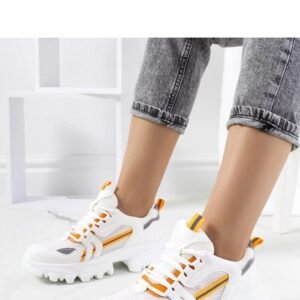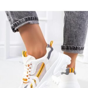 Białe sneakersy damskie Bernier to idealny dodatek do letnich stylizacji. Modny sportowy model na wysokiej podeszwie sprawi, że będziesz wyglądać stylowo i komfortowo. Cholewka wykonana jest z wysokiej jakości skóry ekologicznej, ozdobiona odblaskowymi akcentami. Numeracja jest standardowa, więc warto kierować się swoim rozmiarem przy zakupie. Sneakersy nie posiadają ocieplenia, a podeszwa wykonana jest z gumy w kolorze białym. Zapięcie na sznurowane sprawia, że buty będą idealnie dopasowane do stopy. Sneakersy Bernier to must-have tego lata!