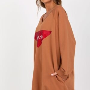 Długa damska bluza w stylu casual to połączenie wygody i efektownego designu. Wyróżnia się dominującym nadrukiem na przodzie, ozdobionym modnymi dżetami, które nadają jej wyjątkowego charakteru i subtelnego błysku. Bluza została uszyta z wysokiej jakości mieszanki bawełny, poliestru i elastanu, co gwarantuje komfort noszenia, trwałość oraz delikatne dopasowanie do sylwetki. Model o przedłużonej długości, z dekoltem w serek, zapewnia swobodę ruchów i stylowy wygląd. Długi rękaw sprawia, że bluza jest idealna na chłodniejsze dni, a praktyczne kieszenie ukryte w szwach bocznych dodają funkcjonalności. Brak zapięcia podkreśla jej casualowy charakter, sprawiając, że to doskonały wybór na co dzień, zarówno do jeansów, legginsów, jak i bardziej eleganckich spodni.