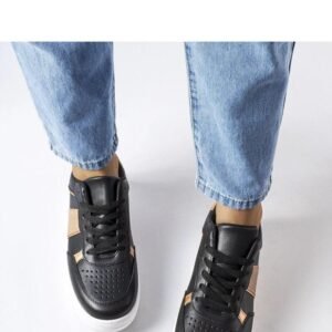 Czarno-złote sportowe sneakersy Parma to idealny wybór dla wszystkich miłośników wygodnego i stylowego obuwia. Wykonane z wysokiej jakości skóry ekologicznej zam, zapewniają trwałość i odporność na warunki atmosferyczne. Sneakersy nie posiadają ocieplenia, co sprawia, że są idealne na ciepłe letnie dni. Podeszwa wykonana z gumy w kolorze białym zapewnia doskonałą przyczepność i komfort podczas chodzenia. Zapięcie na sznurowadła pozwala idealnie dopasować buty do stopy, co gwarantuje stabilność i wygodę podczas aktywności fizycznej. Sneakersy Parma to nie tylko praktyczne obuwie sportowe, ale również modny dodatek do codziennych stylizacji. Ich designerski wygląd sprawi, że będziesz zwracać na siebie uwagę i podkreślisz swój indywidualny styl. Idealne na letnią kolekcję!